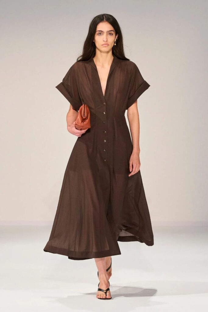 Tradicionalmente asociado con líneas limpias y cortes relajados, este diseño encuentra una nueva dimensión esta temporada. Las pasarelas han apostado por reinterpretarlo con propuestas que amplían sus posibilidades estéticas, adaptándolo a distintos estilos y momentos del día. Así, el vestido camisero deja de ser únicamente una opción práctica para convertirse en una pieza clave dentro de un discurso de moda más sofisticado.