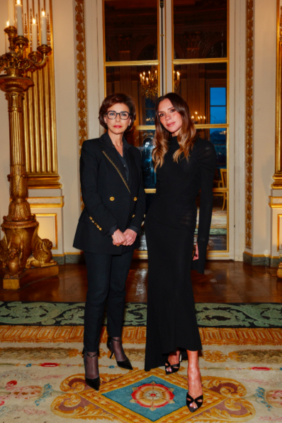 Victoria Beckham, que ha presentado colecciones en la Semana de la Moda de París desde 2022, fue homenajeada por el Ministerio de Cultura francés.