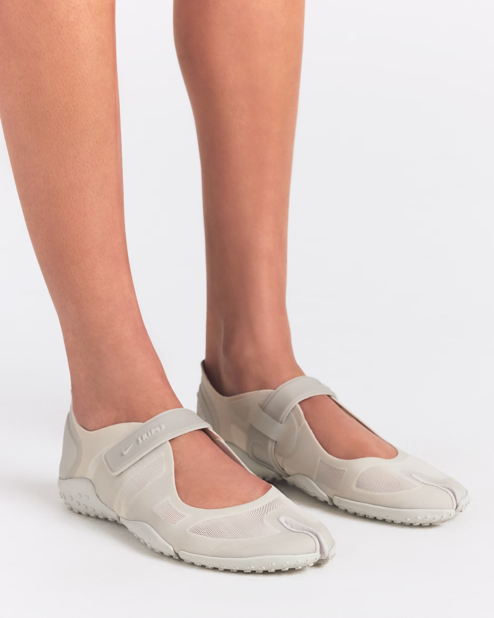 Esta primavera/verano no es la excepción. Llega una mezcla entre los Mary Jane, con el elemento más icónico de las tabi y ese estilo sport que caracteriza a las sneakerinas. Una silueta que, aunque suena inesperada, logra un equilibrio perfecto entre lo femenino, lo funcional y lo sport. Es de esas prendas o accesorios que no te gustan hasta que las llevas puestas.