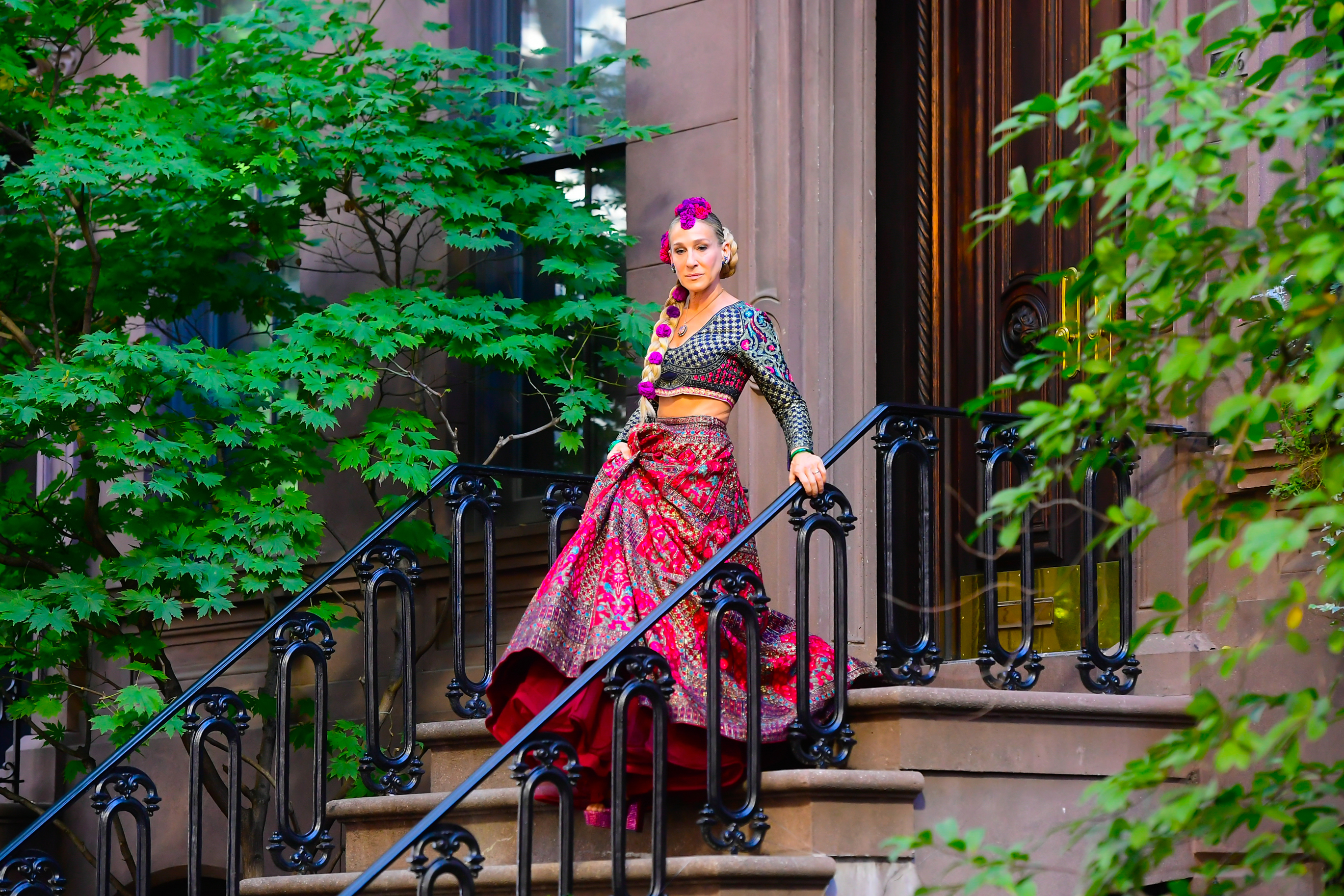 In the latest episode of And Just Like That, changes and transitions are everywhere we turn. Charlotte’s daughters want to redecorate their room, Carrie changes apartments (again), and considers getting a face lift- essentially erasing the last 15 years. Dubbed Diwali, episode 6 of the Sex and the City reboot sees our favorite characters experience a plethora of revelations, ultimately leading each of them, in their own way, to accept both their circumstances and themselves for who they truly are. Ultimately realizing that erasing the last 15 years through cosmetic surgery would mean metaphorically erasing an era of growth and happiness, Carrie decides to accept her age and her life as it is right now. Fully expressed through their expertly curated wardrobes, each character finds their way back to their truest selves.