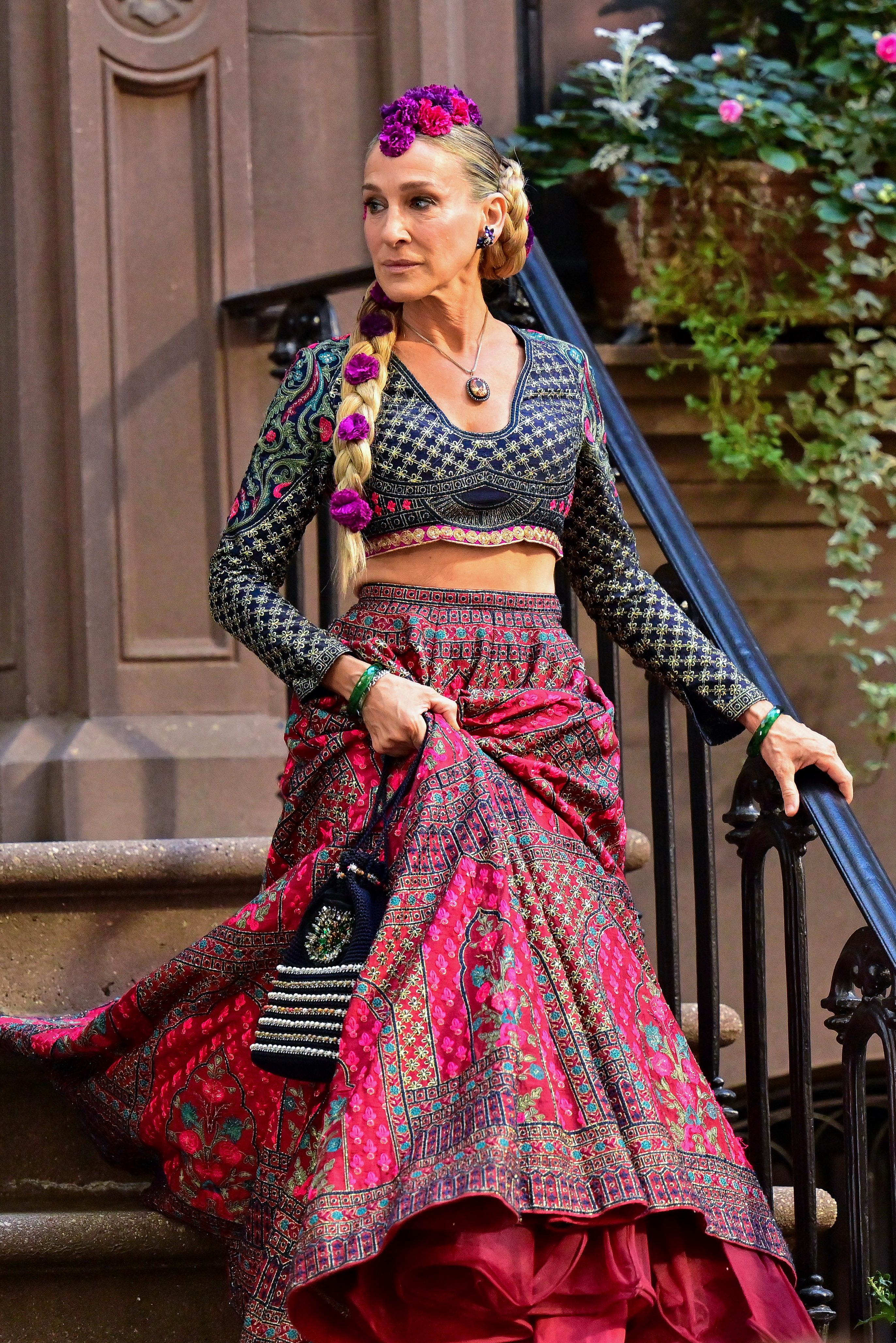 NEW YORK, NEW YORK – OCTOBER 20: Sarah Jessica Parker seen on the set of “And Just Like That…” the follow up series to “Sex and the City” in the West Village on October 20, 2021 in New York City. (Photo by James Devaney/GC Images)