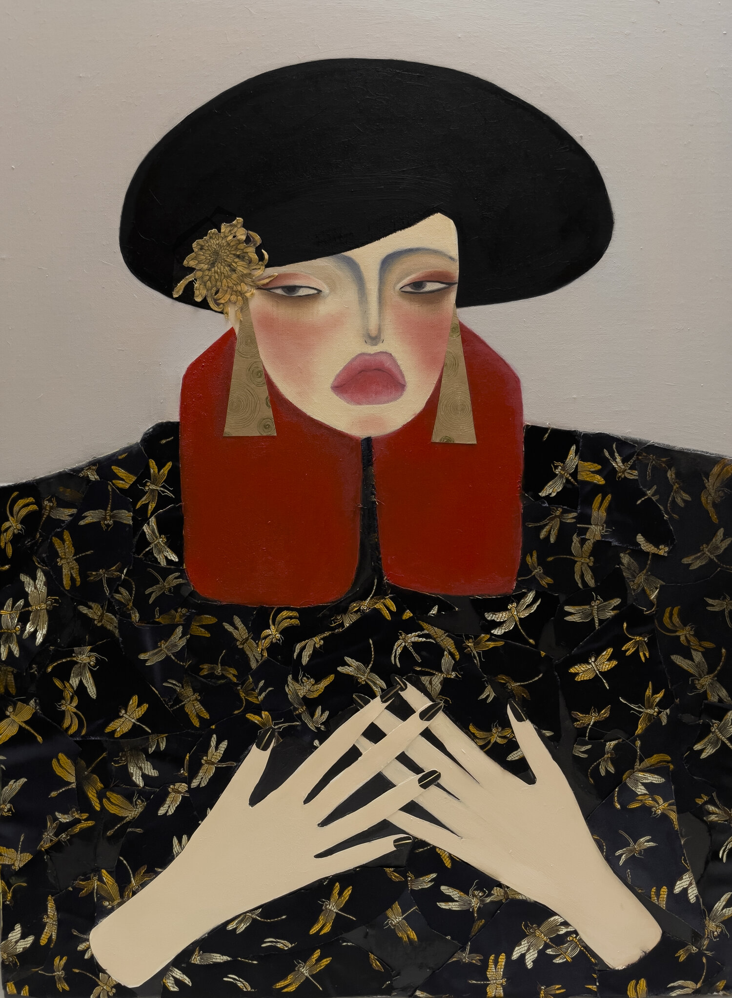 Oil, fabric and paper on canvas