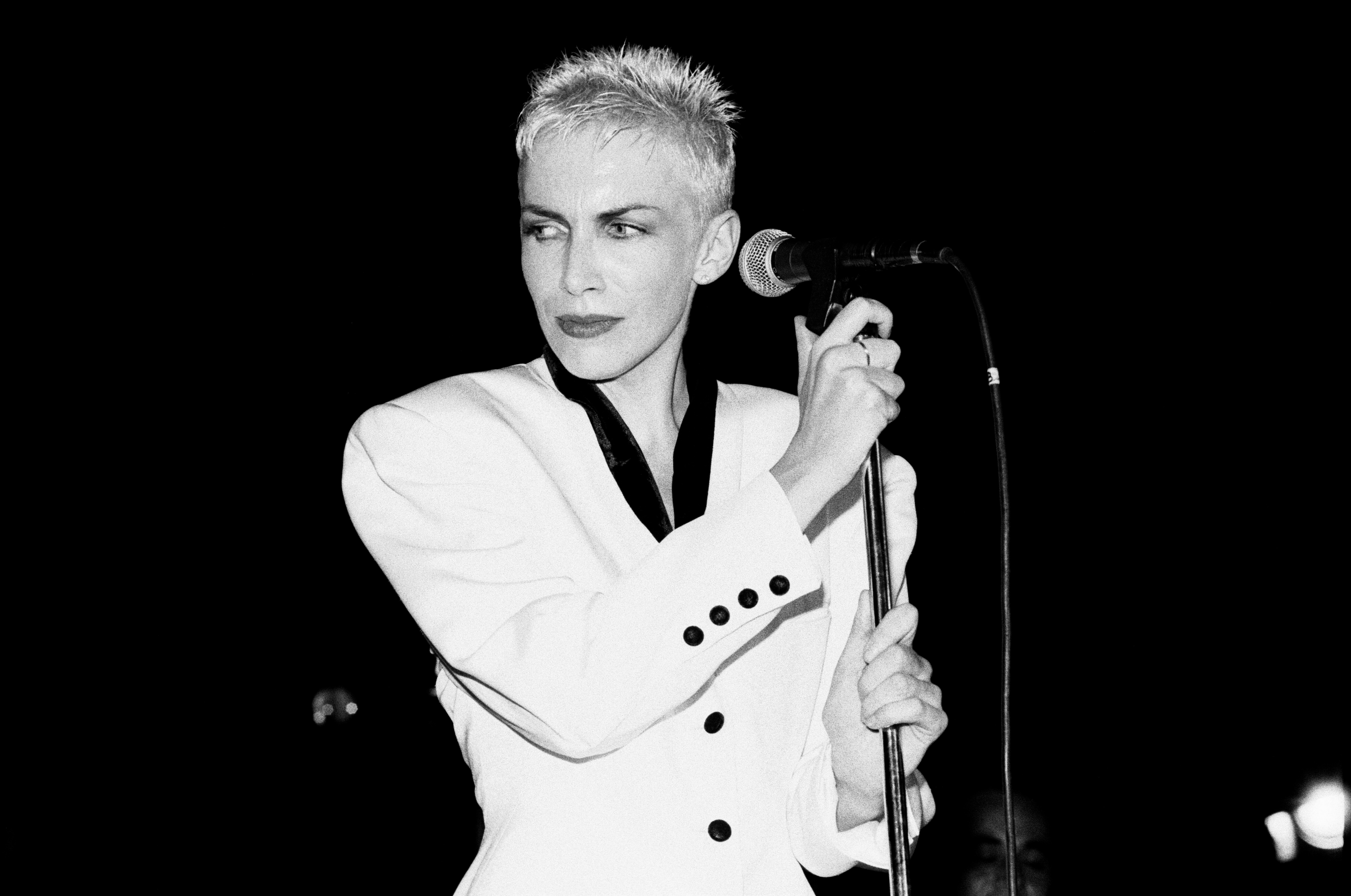 Annie Lennox performs onstage circa 1985. (Photo by Lester Cohen) (Photo by Lester Cohen/Getty Images)