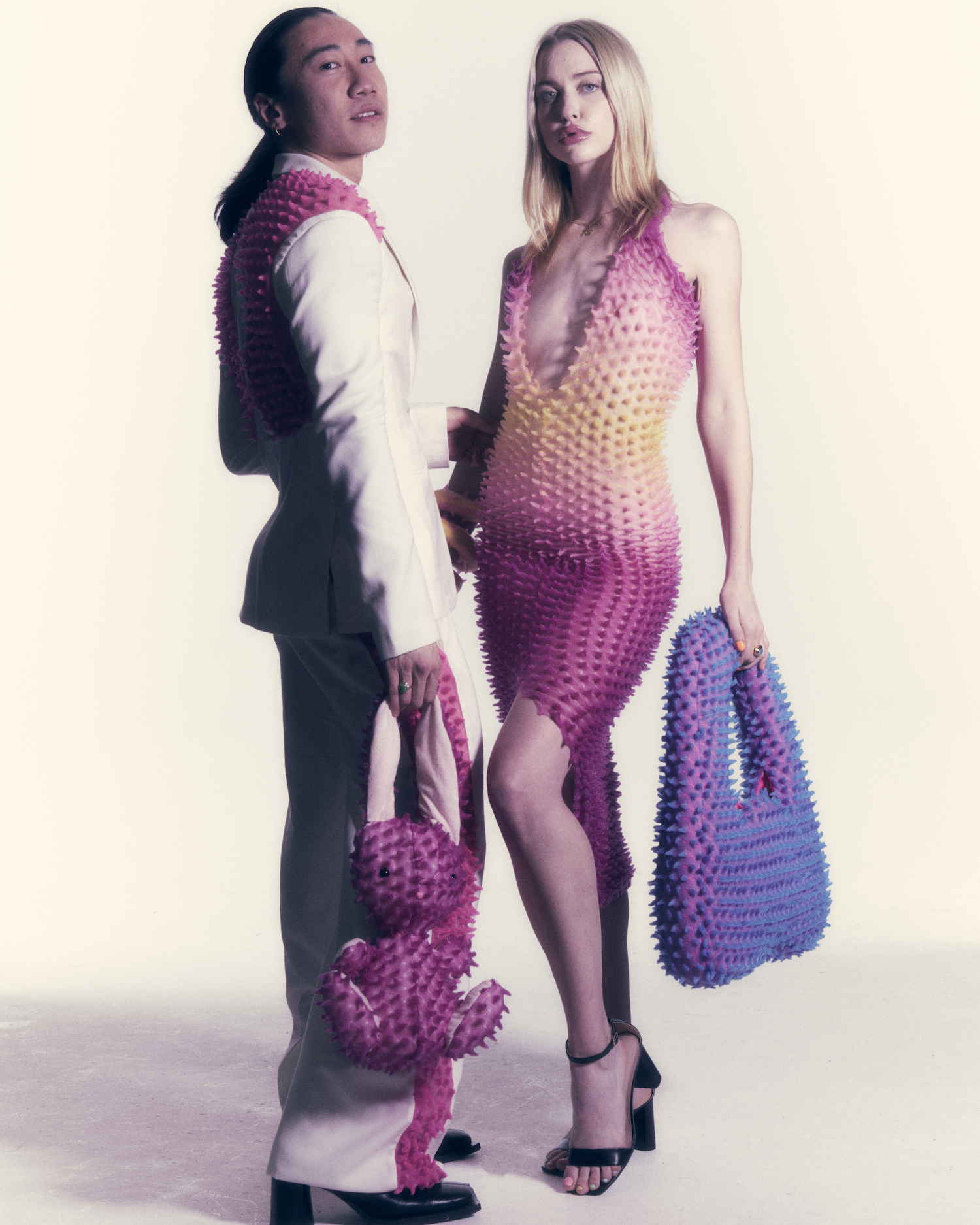 Lo: We have a lot of things coming. The last two seasons, we’ve gotten down our brand identity. So now, it’s about trying new and different things, and trying to tell more of the story of what I want to say, and the kind of techniques I want to do, and really grow from there. I want to offer a lot of different options, because a lot of times, people think that the garments are very party-wear. And they’re not wrong. It’s very slutty and fun. But I want to offer garments that people can wear to the grocery store, people can wear to the airport. Offering different variations, as well as branching off into the world of design, and not just fashion. I want to see where things can take off from there. I think fashion can be quite limiting, and I feel like I have more to give.