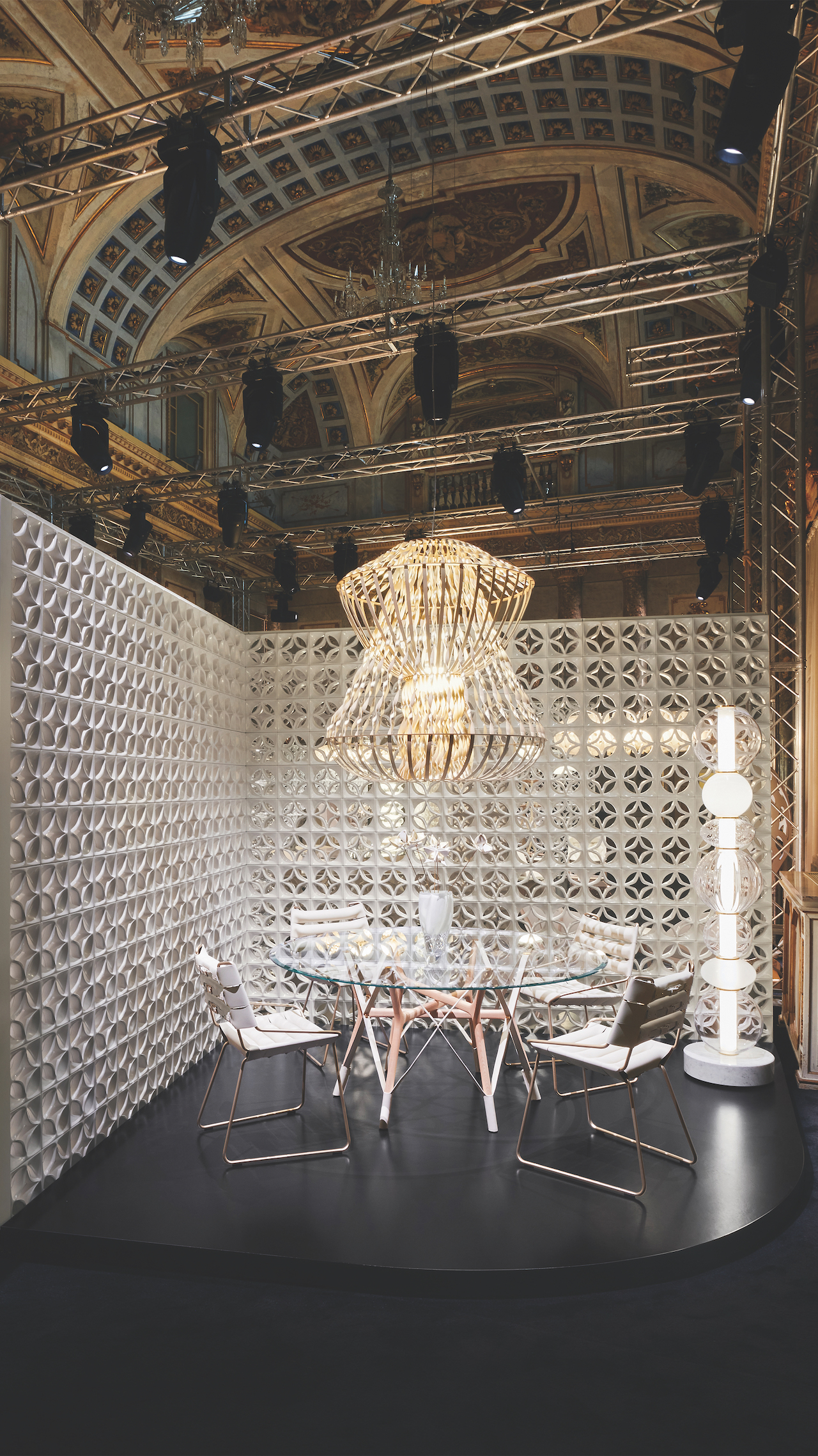 “When you look through the table, you can feel that — that you are connected to all the persons around the table,” Aebi says. “In design, you often say form follows function and not form follows emotion. But you need that emotion, and all these pieces make you travel in your mind.”