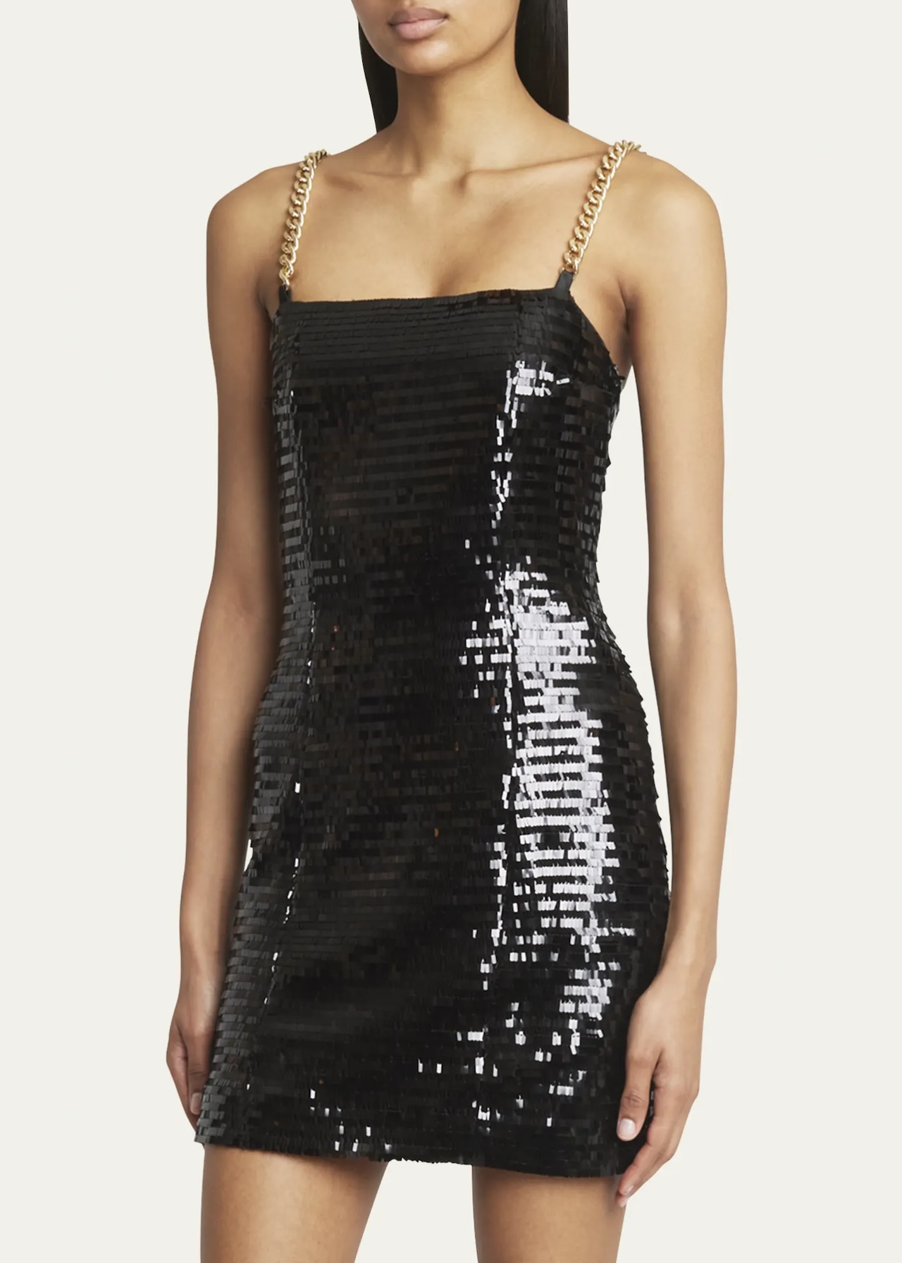 REFORMATION HERMIA KNIT DRESS, $133.50 ($178). SHOP NOWBALMAIN SEQUIN MINI DRESS WITH CHAIN STRAP DETAIL, $2,034 ($3,390). SHOP NOWMANGO TEXTURED EARRINGS WITH PEARL ORNAMENT, $23.99 ($29.99). SHOP NOW