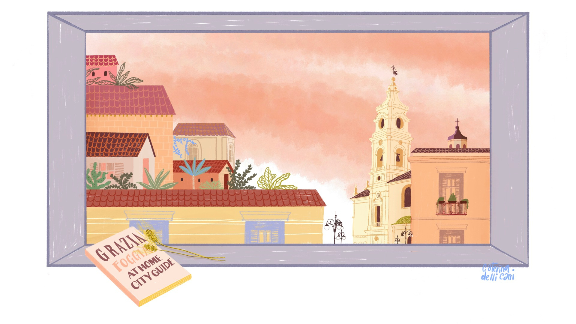 Over the course of the past 12 months, we’ve been commissioning artists, painters, and illustrators from different cities all over the world to paint a picture of what they see out their windows – either real or imaginary. Most artists have been confined to these cities during the global lockdowns, and all have a close connection to the place they have illustrated. Each artist has a “GRAZIA At Home City Guide” perched on their windowsill, insider guides to the cities you need to visit and recollections of moments past in these nooks of the world; how they drank in the palaces, how they wandered through the parks and how they ate and ate and ate. There’s recommendations too – local dishes, phrases and lessons – so you can start imagining your own itinerary from the comfort of your own home. Today, we’re headed to Foggia in Italy.