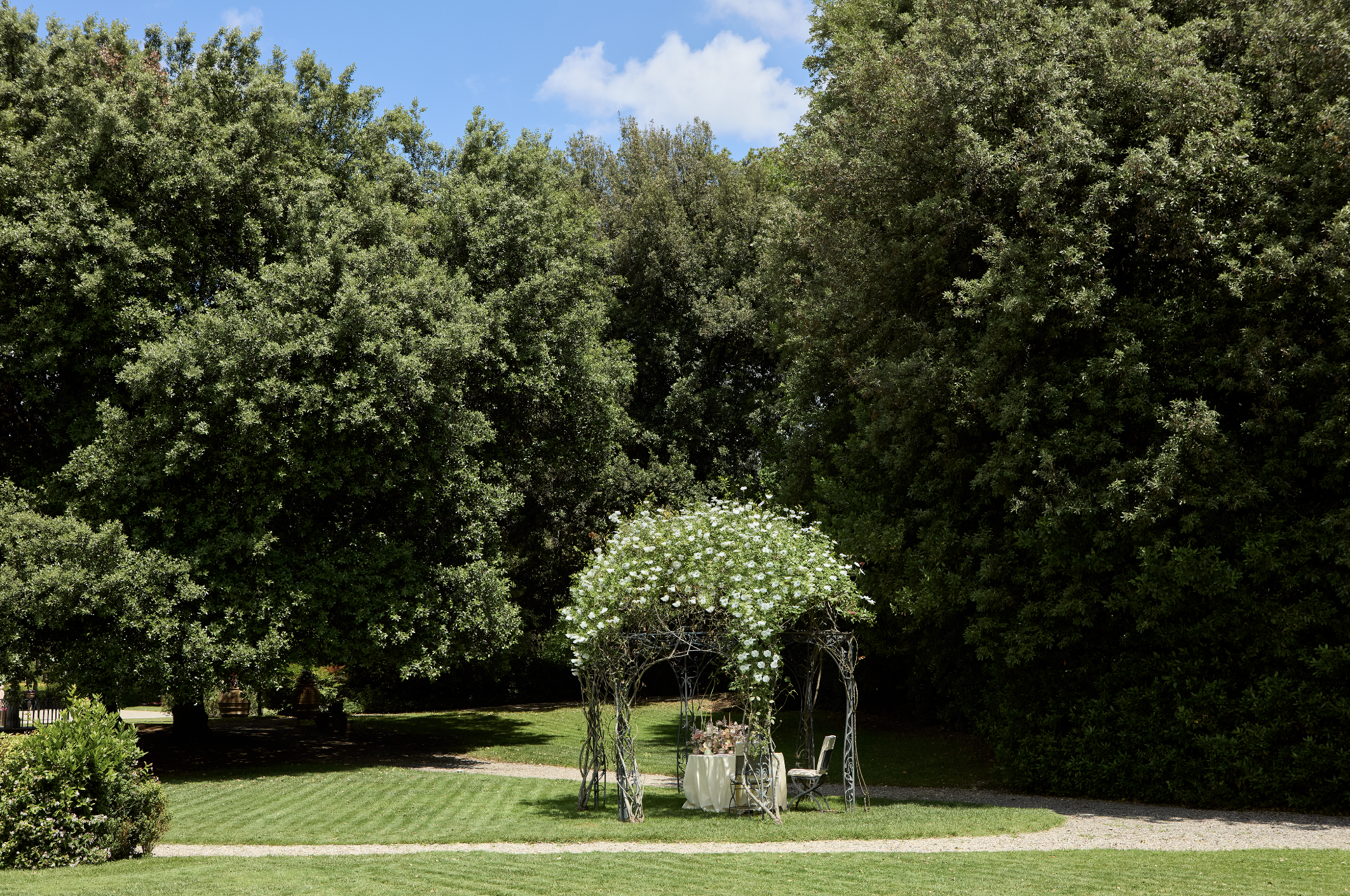 Once a Medici playground — and later a romantic English garden — it’s now a private Eden accessible only to hotel guests. Couples in linen stroll under canopies of ivy. A man in a Loro Piana polo reads Dante by a marble nymph. A waiter glides past with Negronis balanced on a silver tray. It’s all terribly cinematic, the kind of scene that makes you wonder why you didn’t pack a silk scarf.