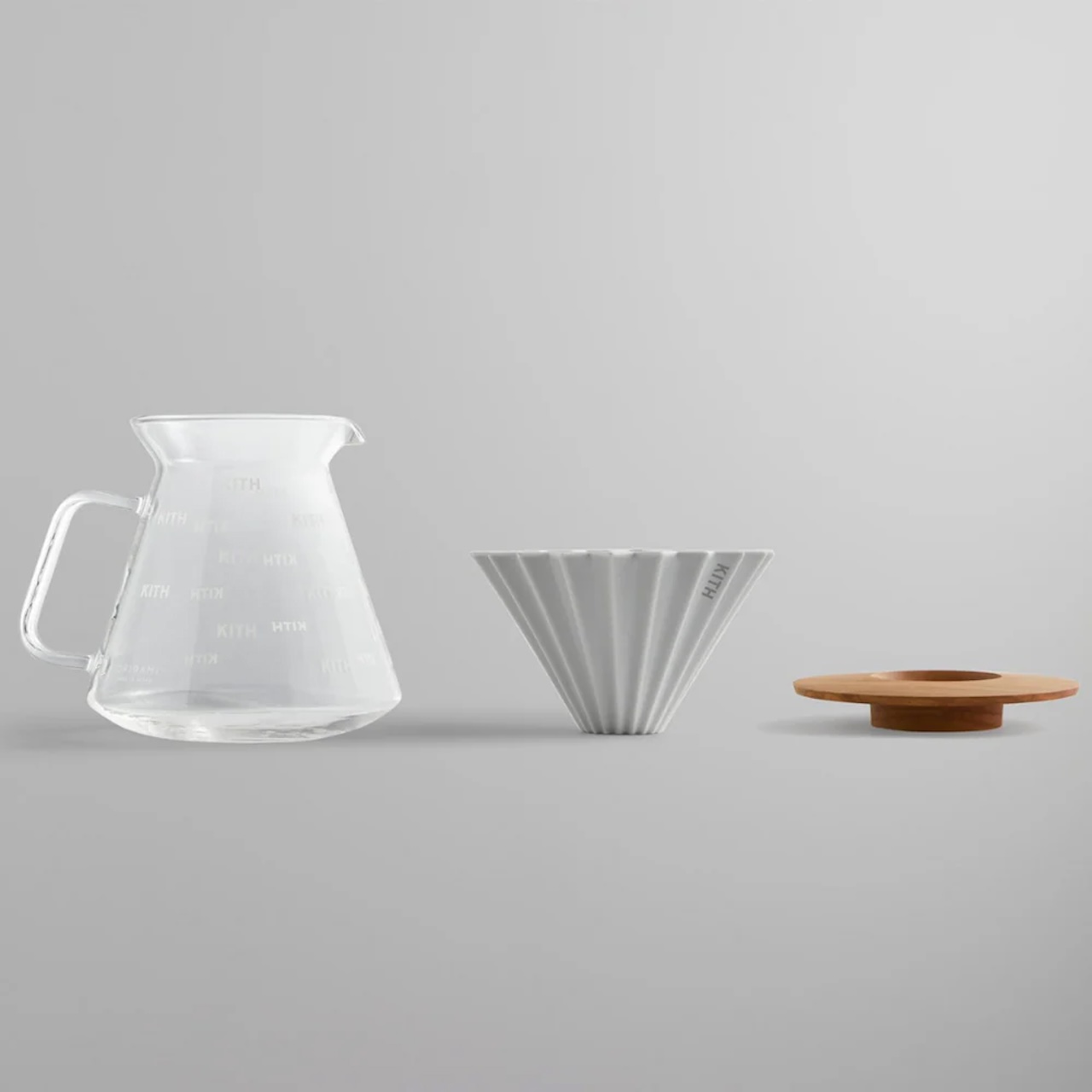 In 2023, Kith teamed up with Japan’s ORIGAMI to create sleek, branded coffee drippers, holders, and servers. The minimalist collection appealed to design lovers and coffee enthusiasts alike.