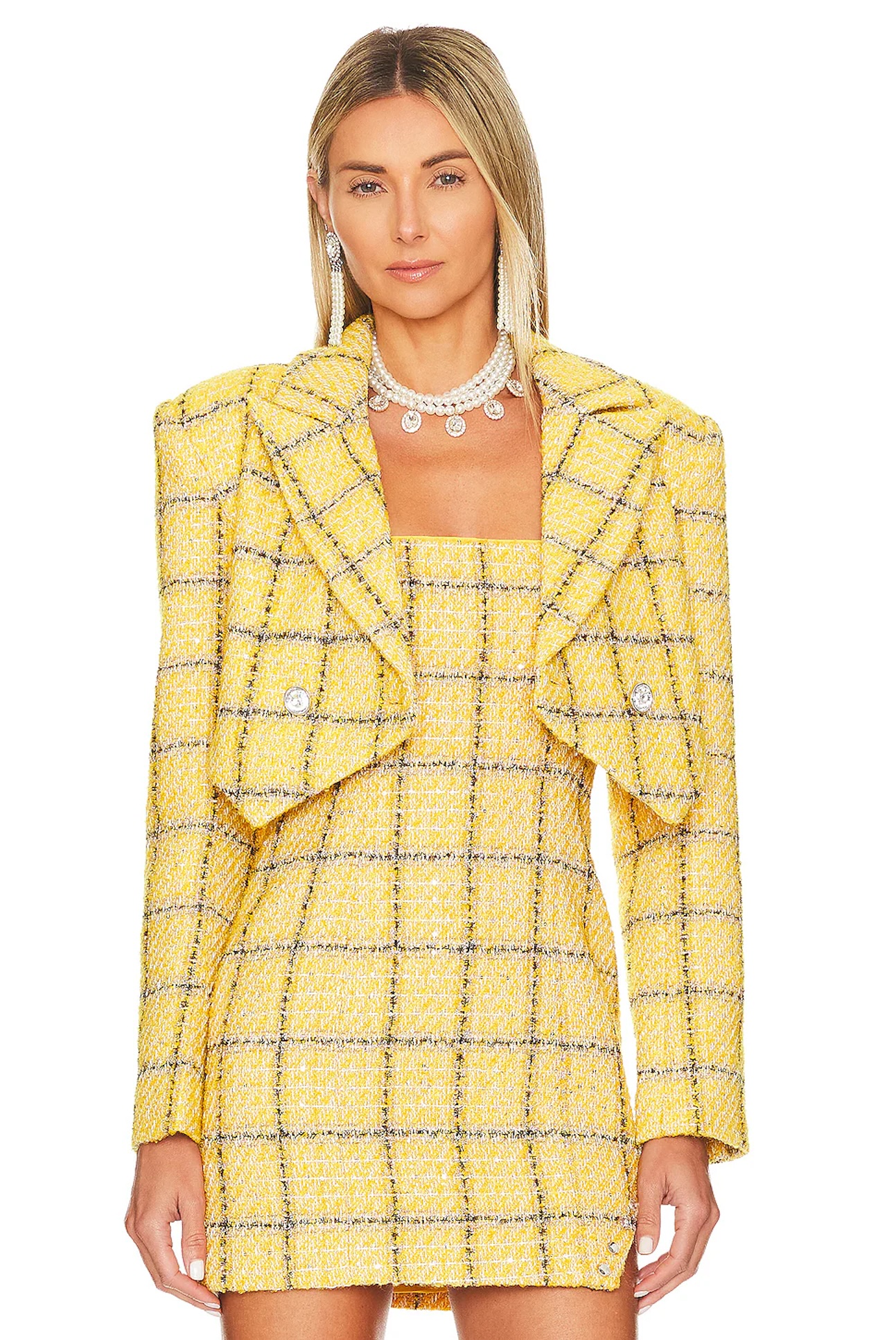 Lohan kicked things off with a polished and powerful look from Balmain Resort 2026, exuding boardroom-chic with a fashion-forward, Clueless-esque edge. Paired with yellow Christian Louboutin Sova sandals, Oliver Peoples Lumar sunglasses, and a classic Hermès Kelly Bag, the ensemble was elevated by her layered Jessica McCormack diamond jewelry and a Cartier Panthère de Cartier watch.