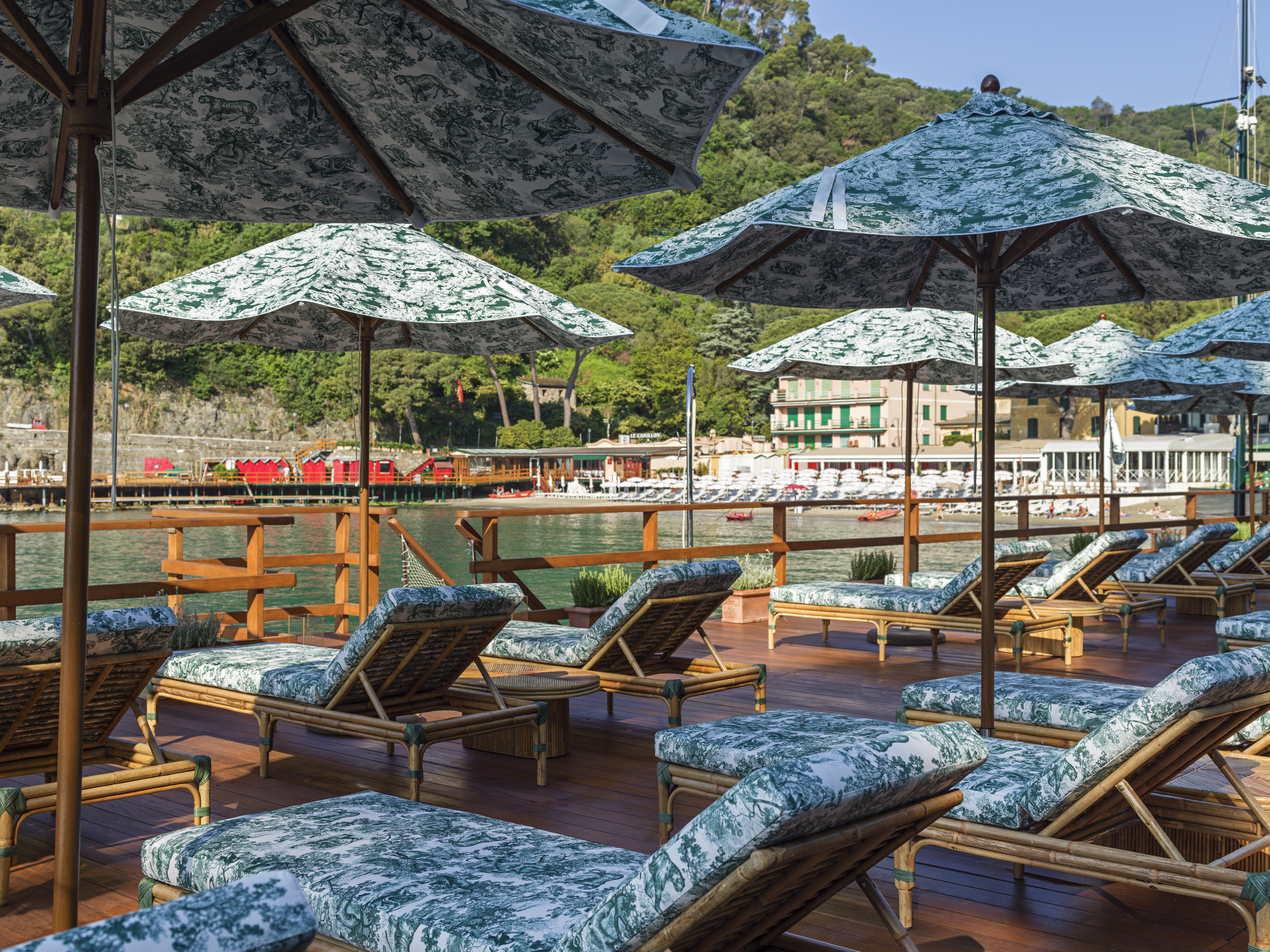 Spreading out onto Bagni Fiore on the Bay of Paraggi with a second pop-up spa, signature massage therapies are provided, along with a revamped lounge area with the new green toile de Jouy treatment. As a Protected Marine Area, all boats are banned from the exclusive beach club, translating to crystal-clear, uninterrupted, tranquil waters.