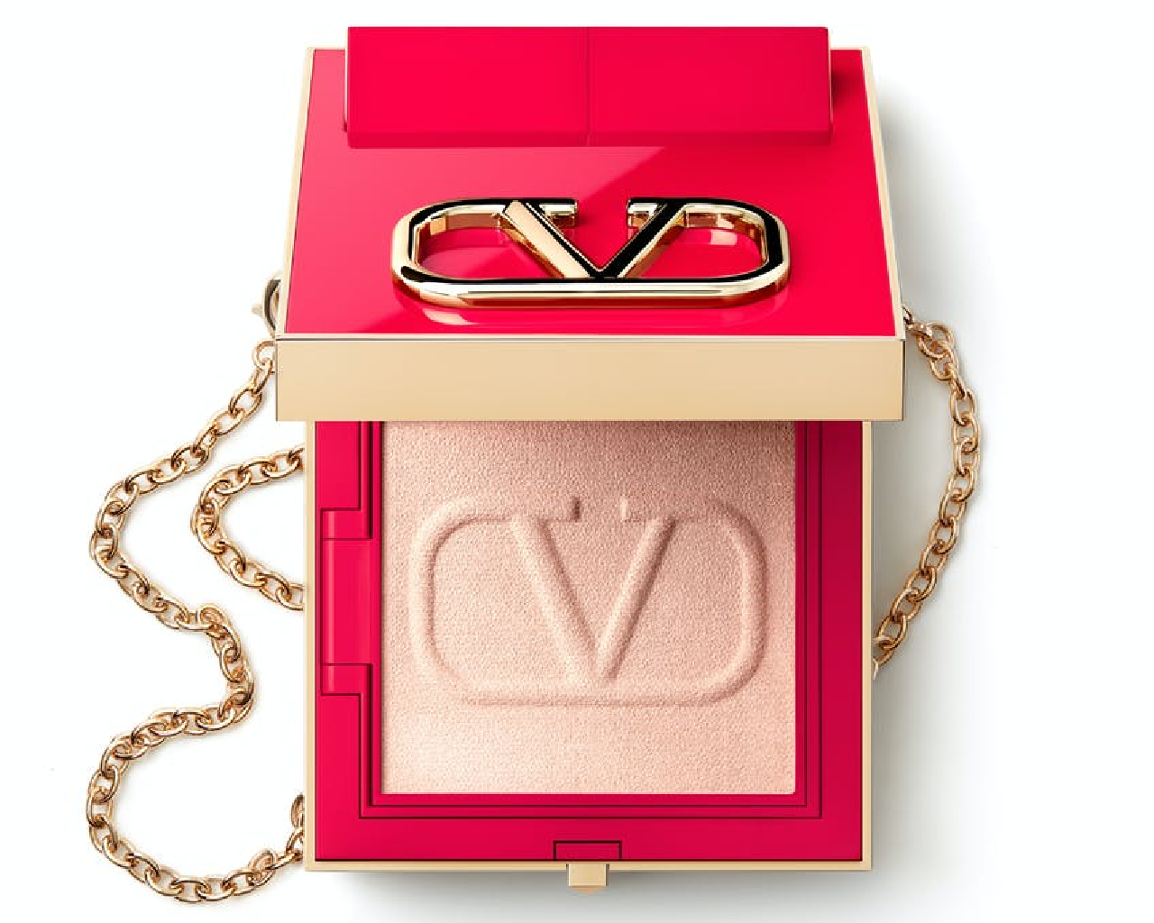 We’ll never forget when Valentino unveiled tiny crossbody clutches designed to hold lipstick and powder compacts at its Spring-Summer 2017 runway show. Apparently, we’re not alone because the luxury label is reviving them for the debut launch of Valentino Beauty, coming this summer. The itty-bitty bag hangs on a delicate gold chain and looks like a standard cool-girl accessory, but its secret is that it comes with a powdered bronzer, blush, or highlighter inside, perfect for on-the-go application. And when it runs out, you can swap the pan out for $50.