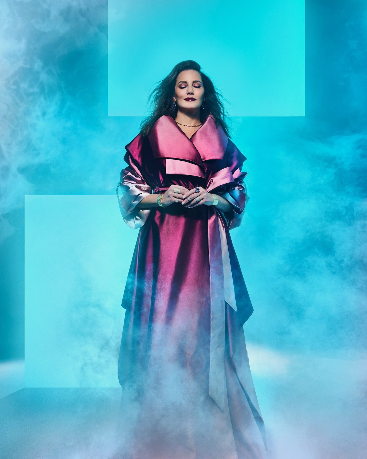 “The Magnifique collection that I just launched has a magnifying glass in the center so that I can read the menu in the restaurant, which has become a little more challenging at my age now,” she says with a laugh of the functionality elements. She creates two-sided pieces and patented a clasp called the Kristina Clasp for maximum versatility in her jewelry.