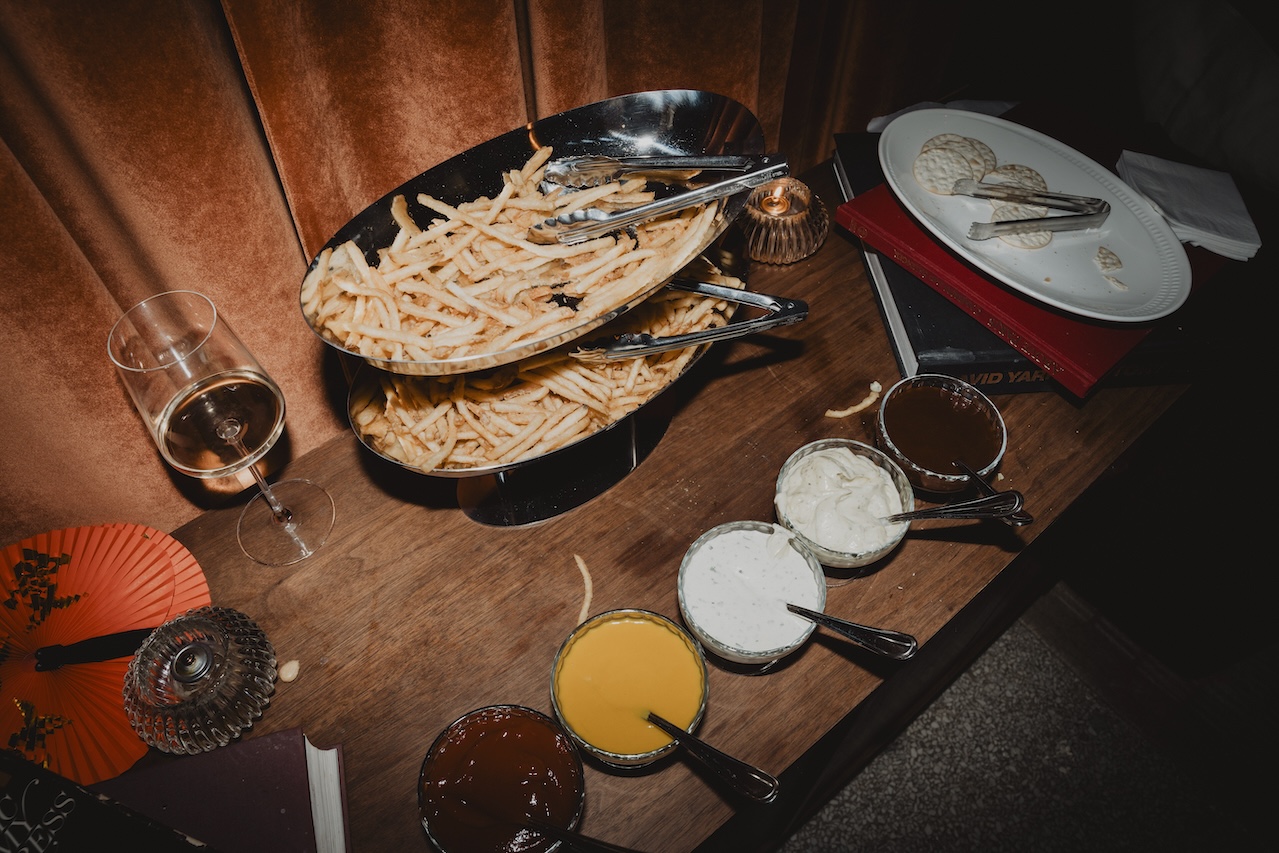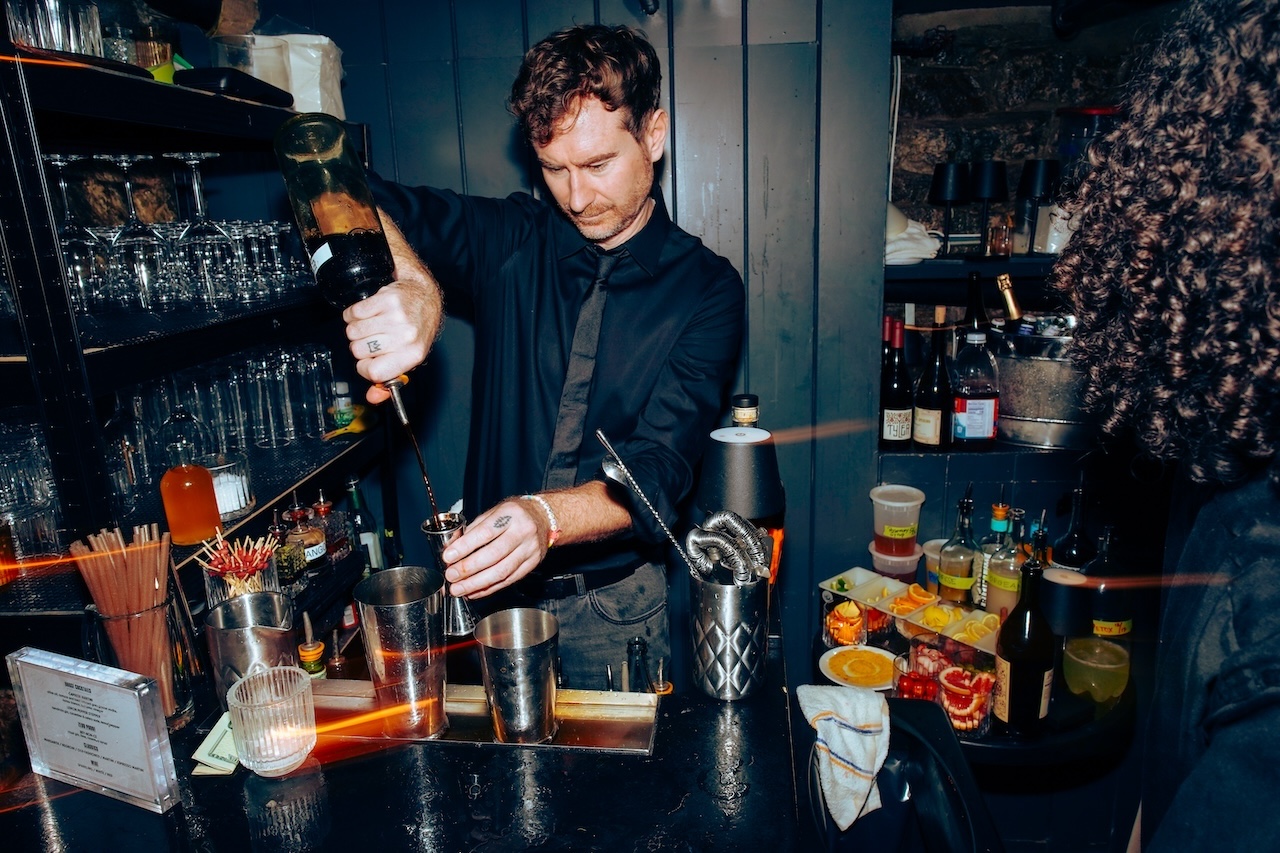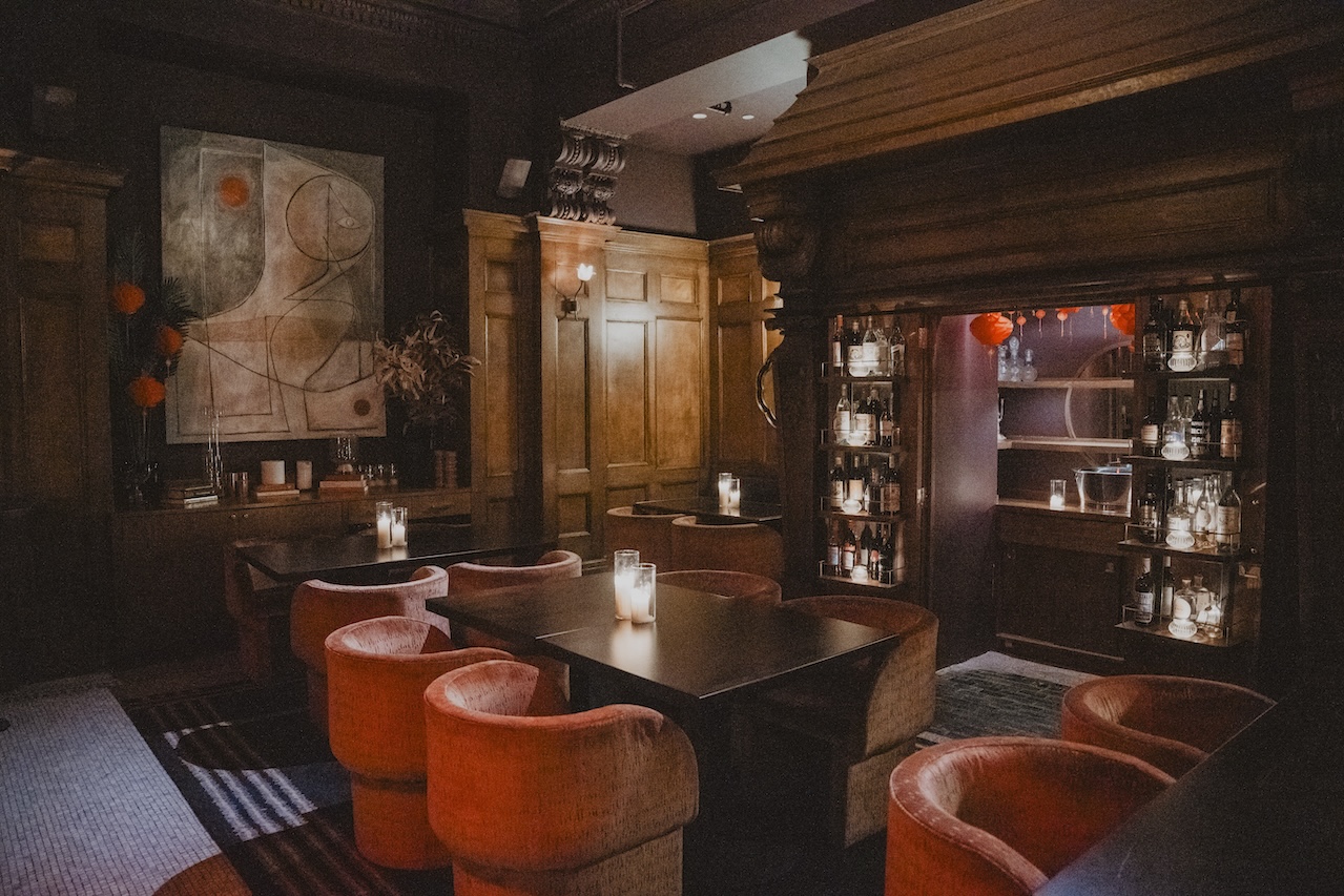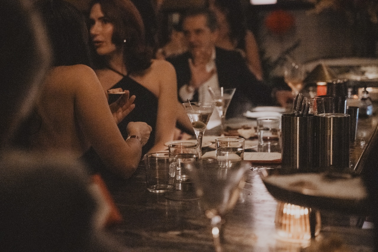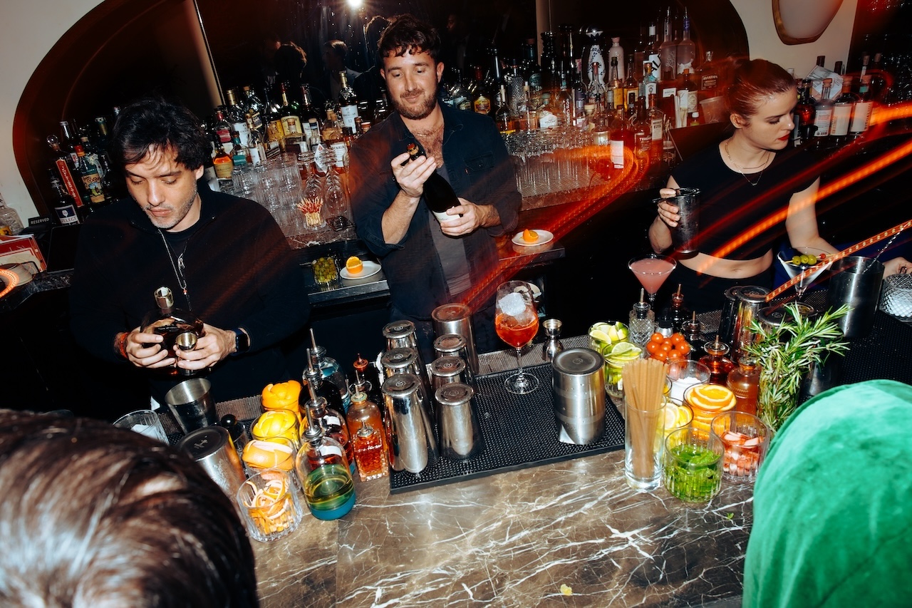 Its three distinct rooms — a front bar serving signature cocktails, a velvet-clad downstairs lounge, and a back room dedicated to Martini Mayhem — offer something for every mood. Iconic photographs by NoHo neighbor Janette Beckman adorn the walls, and custom uniforms by Angelo Baque of AWAKE NY tie it all together with a distinctly New York edge. The culinary program is helmed by Michelin-starred chefs Jeremiah Stone and Fabián von Hauske, ensuring every bite is as unforgettable as the ambiance.