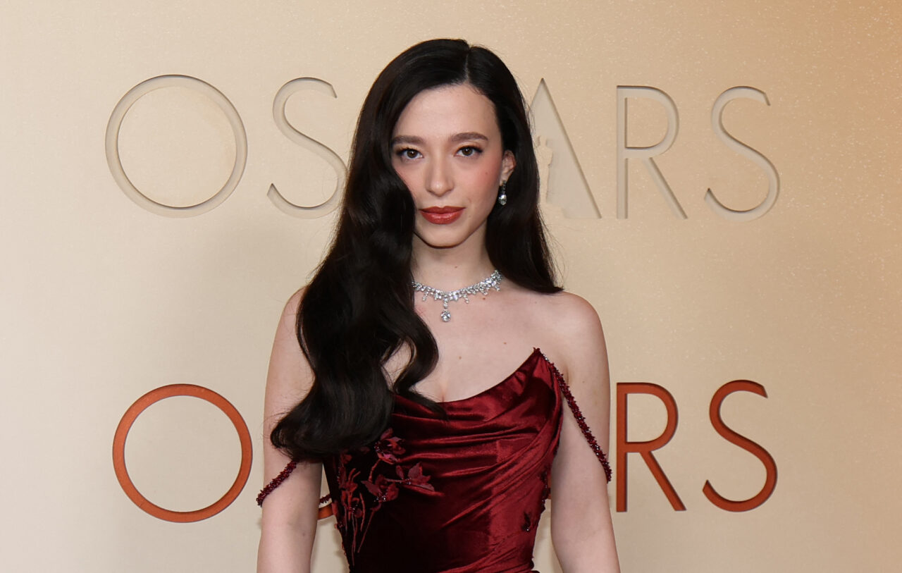 The actress rocked a sharp cherry cola bob and an extended cateye for the 2026 Oscars.