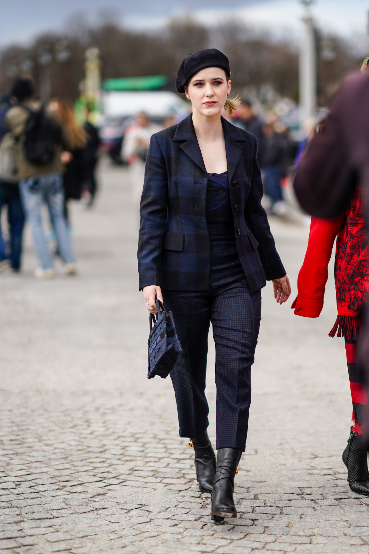 PARIS, FRANCE – Rachel Brosnahan outside Dior, during Paris Fashion Week – Womenswear Fall/Winter 2020/2021, on February 25, 2020 in Paris, France. (Photo by Edward Berthelot/Getty Images)