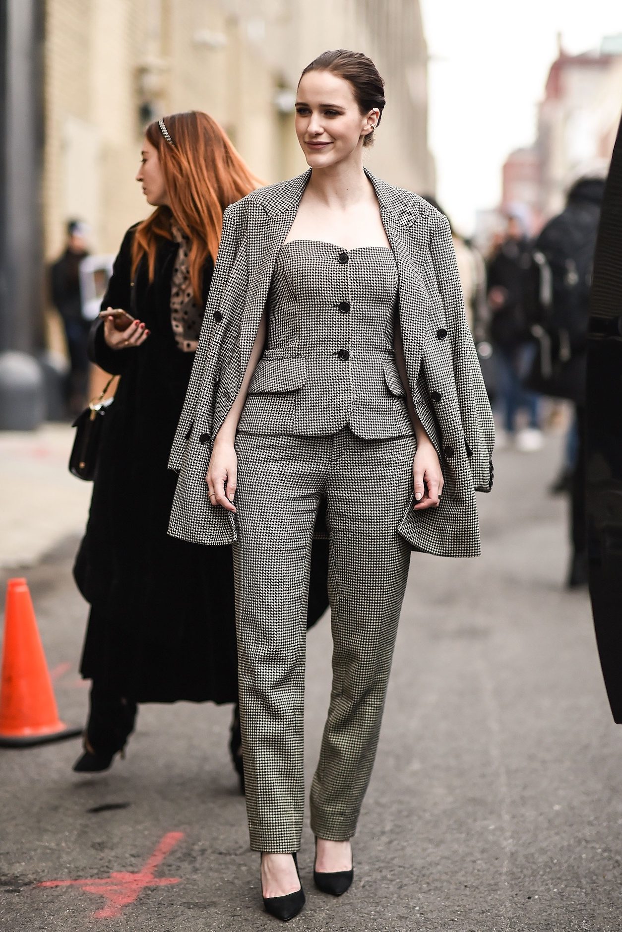 NEW YORK, NY – SEPTEMBER 09: Rachel Brosnahan is seen on the street during New York Fashion Week SS19 wearing Rodarte on September 9, 2018 in New York City. (Photo by Matthew Sperzel/Getty Images)